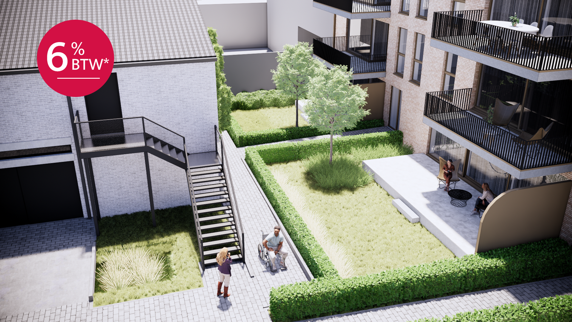 Extra comfort wordt geboden door bovengrondse garages, een waardevolle meerwaarde in deze centrale ligging. Bovendien is 6% btw mogelijk onder voorwaarden, wat dit project ook financieel bijzonder aantrekkelijk maakt.